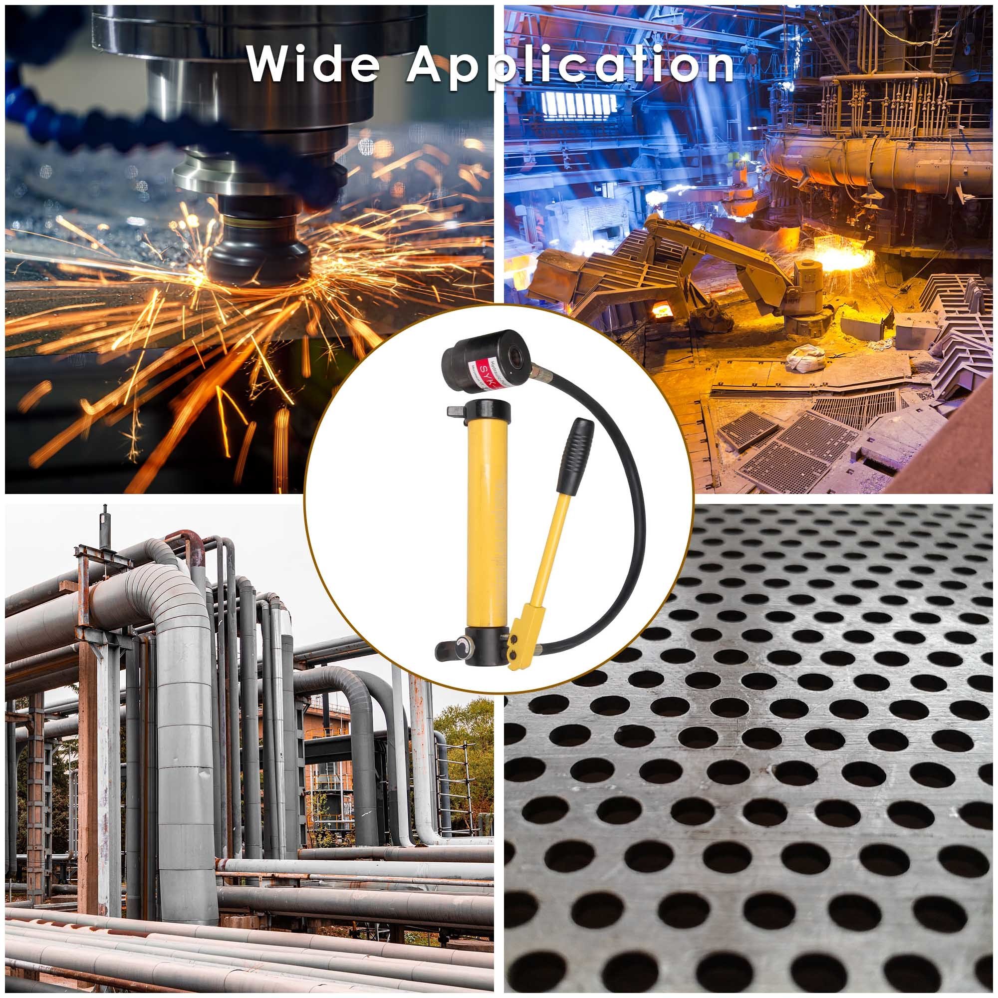 - Efficient Hydraulic Design - Hydraulic mechanism pump produces 10T strong pressure for providing high punching accuracy and fast punching speed on punching uniform holes; more labor-saving and faster than common wrenches; ideal for improving working efficiency; pump with pressure hose for adjusting the angle of the ram flexibly to meet your punching needs; perfect for using in narrow places