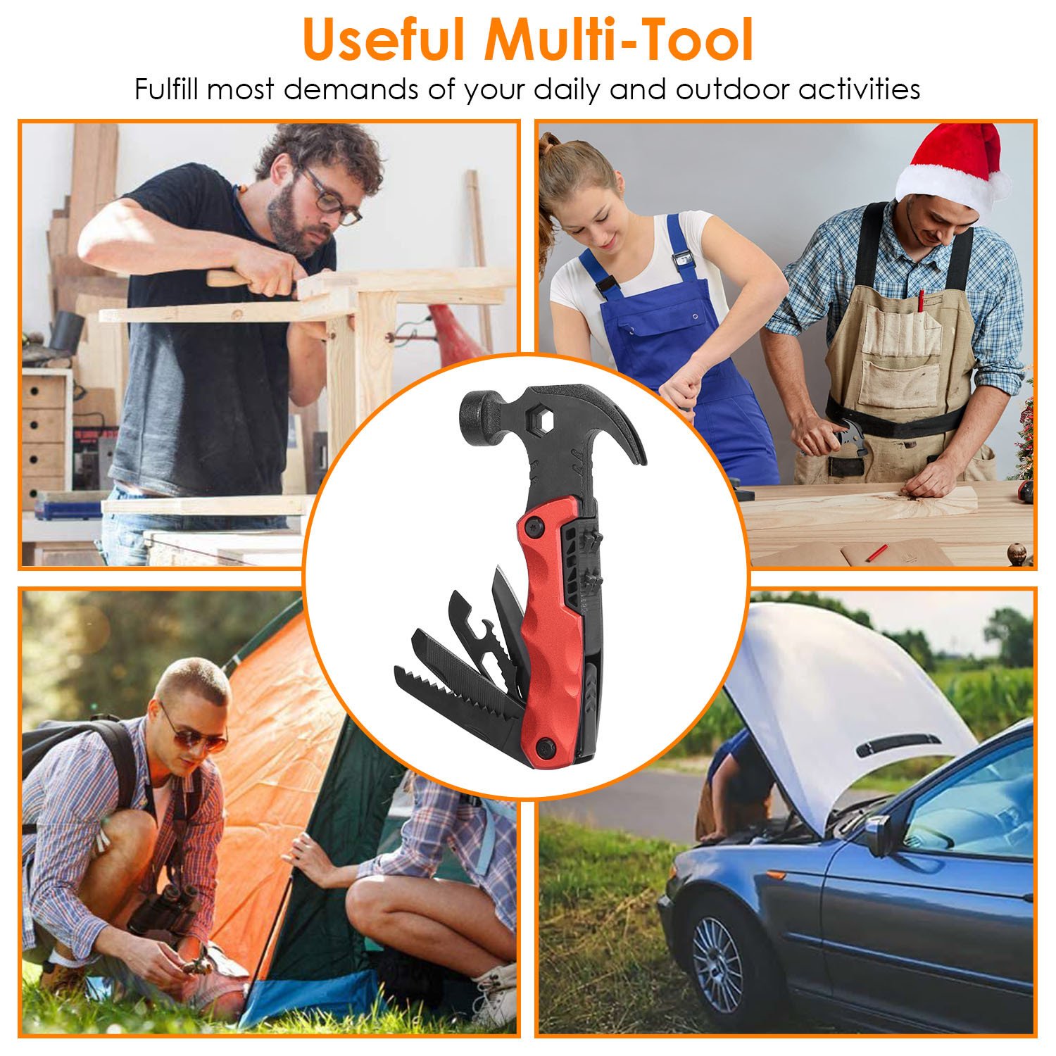 *Men Necessary Tool*:If your beloved one likes camping; hiking; picnic; fishing; climbing; etc.; our multi-use tool is a perfect gift idea as Christmas Gifts; Stocking Stuffers for Men; Fathers’ Day Gifts for Dad; Valentines’ Day Gifts for Him; Birthday Anniversary Gifts. This hammer tool kit is also practical for daily home repairing. Every man needs the multi-purpose tool. When he used the multi-tool anytime; he will never forget your warmth and sincerity.