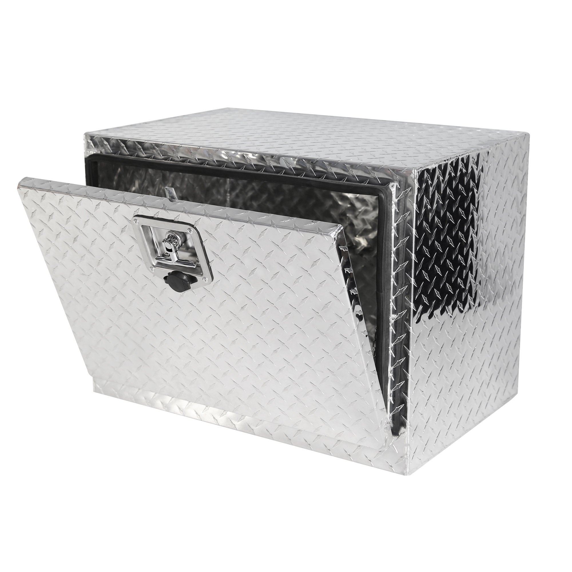 Home > 24 Inch Aluminum Stripes Plated Tool Box Pick Up Truck Bed RV Trailer Toolbox Waterproof Square Storage Organizer with Lock and Keys 24"(24.2"√ó17.1"√