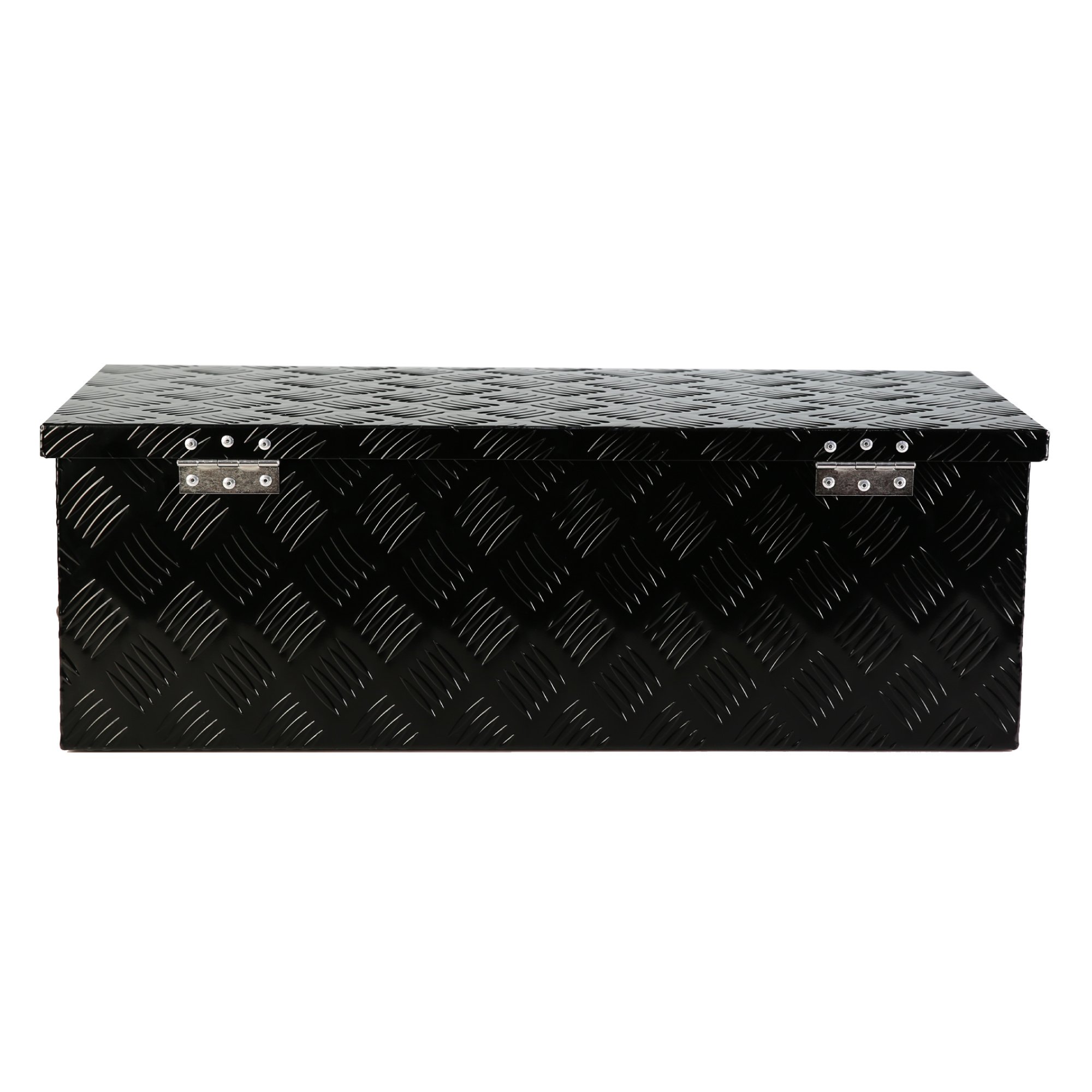 Powdercoated Black Aluminum Surface Finish, 5 Bar Tread Pattern Strengthens the Aluminum for Maximum Durability. High-quality and durable appearance make the Trailer Tool Box rarely needed to repair.