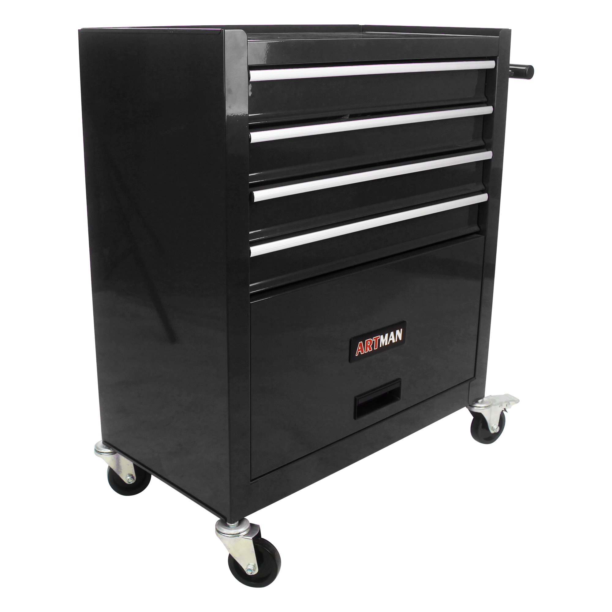 Product Name4 Drawers Tool Cabinet with Tool SetsMaterialCold Rolled SteelSurface FinishPowder CoatingCasters4" Casters (2PCS with brake and 2PCS without brake)Size24.25*13*29.33Package Size28.86*27*15.18ColorBlackNet Weight19KGGross Weight21KG