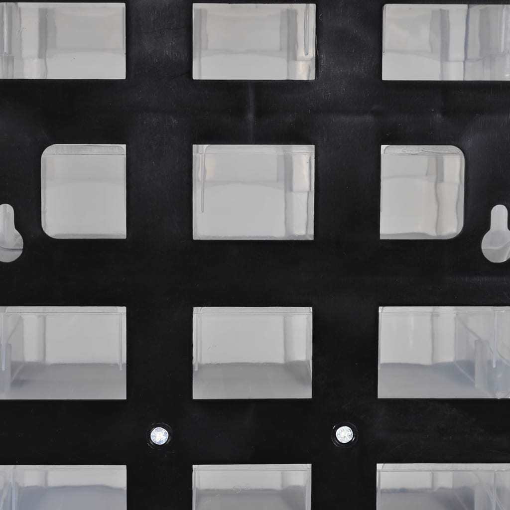 This 41-Drawer Plastic tool box provides a great way to organize your work area with 40 small drawers and a large one. It is perfect for keeping all kinds of small things, such as small-sized machine components, accessories, or even your DIY works. You could choose either the large drawer or small one according to the size of the things you want to put in. Durable transparent plastic ensures visibility of the items being stored in the drawer. There are 2 small holes on the back of the box for you to hitch it to wall or other surface.