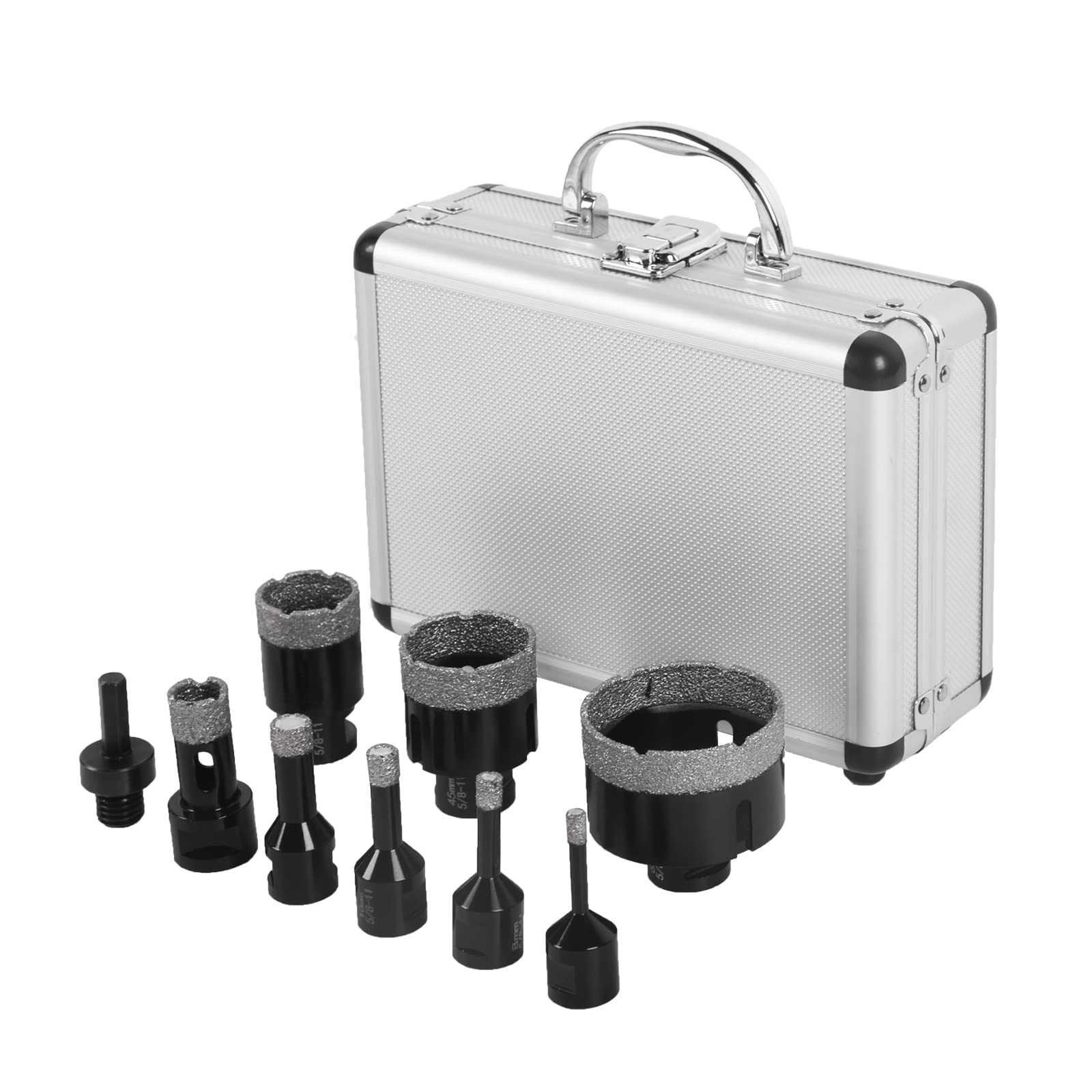 1.[COMPLETE DRILL SET]This 9pcs diamond core drill bits set include 8pcs(6/8/10/13/19/35/45/65mm) drill bits+1 piece Hexagon shank, which can meet your various needs.