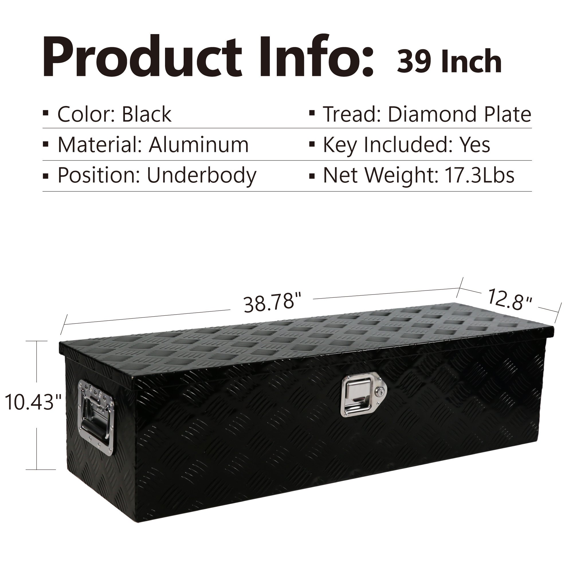 •Size 38.78"(L) x 12.8"(W) x 10.43"(H),Surface Finish: Powdercoated Black Aluminum; 5 Bar Tread Pattern Strengthens the Aluminum for Maximum Durability.