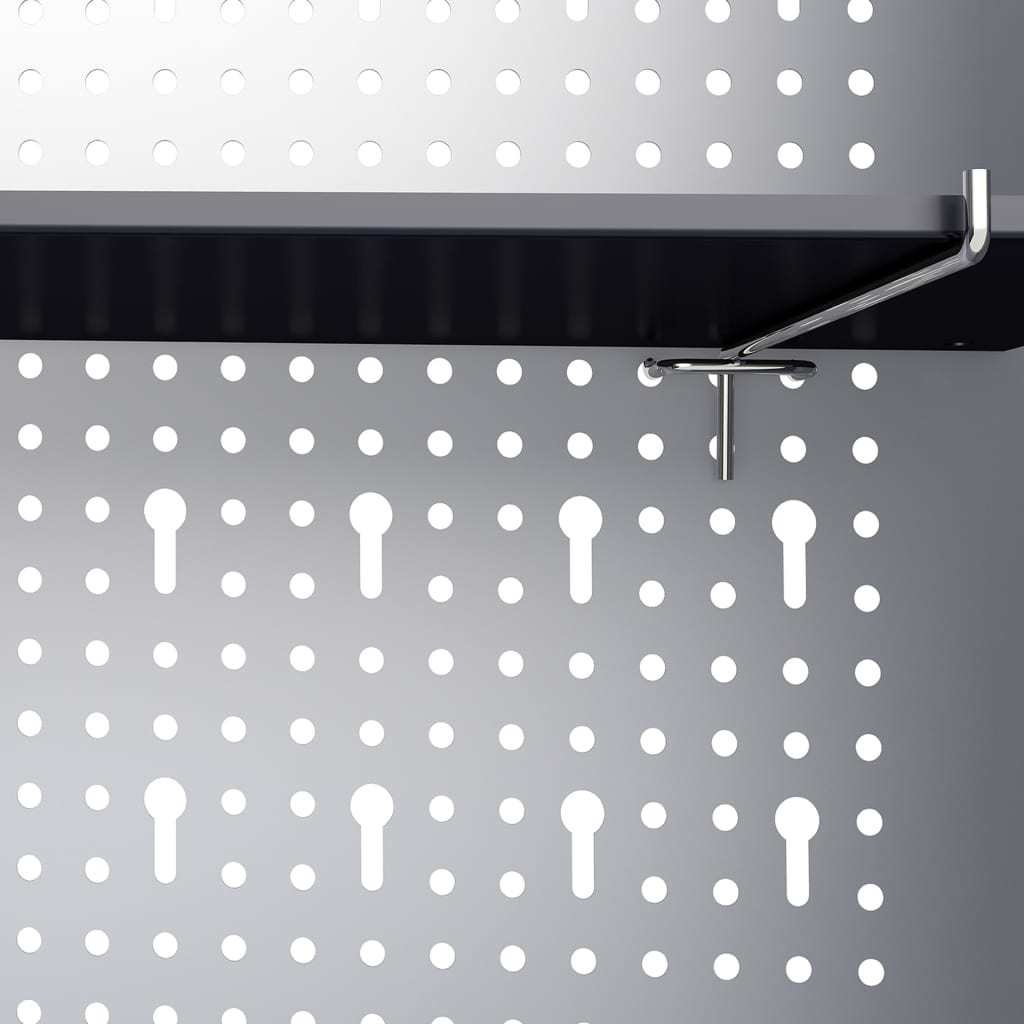 This tool organizer features one height-adjustable shelf and a perforated plate with Euro holes that can be used to hang various kinds of tools such as spanners, pliers, hammers, etc. Equipped with one lockable door (2 keys included), the tool cabinet provides extra safety. It is made of metal with an extra strong scratch-proof coating, making it durable and easy to clean. This product needs to be assembled.