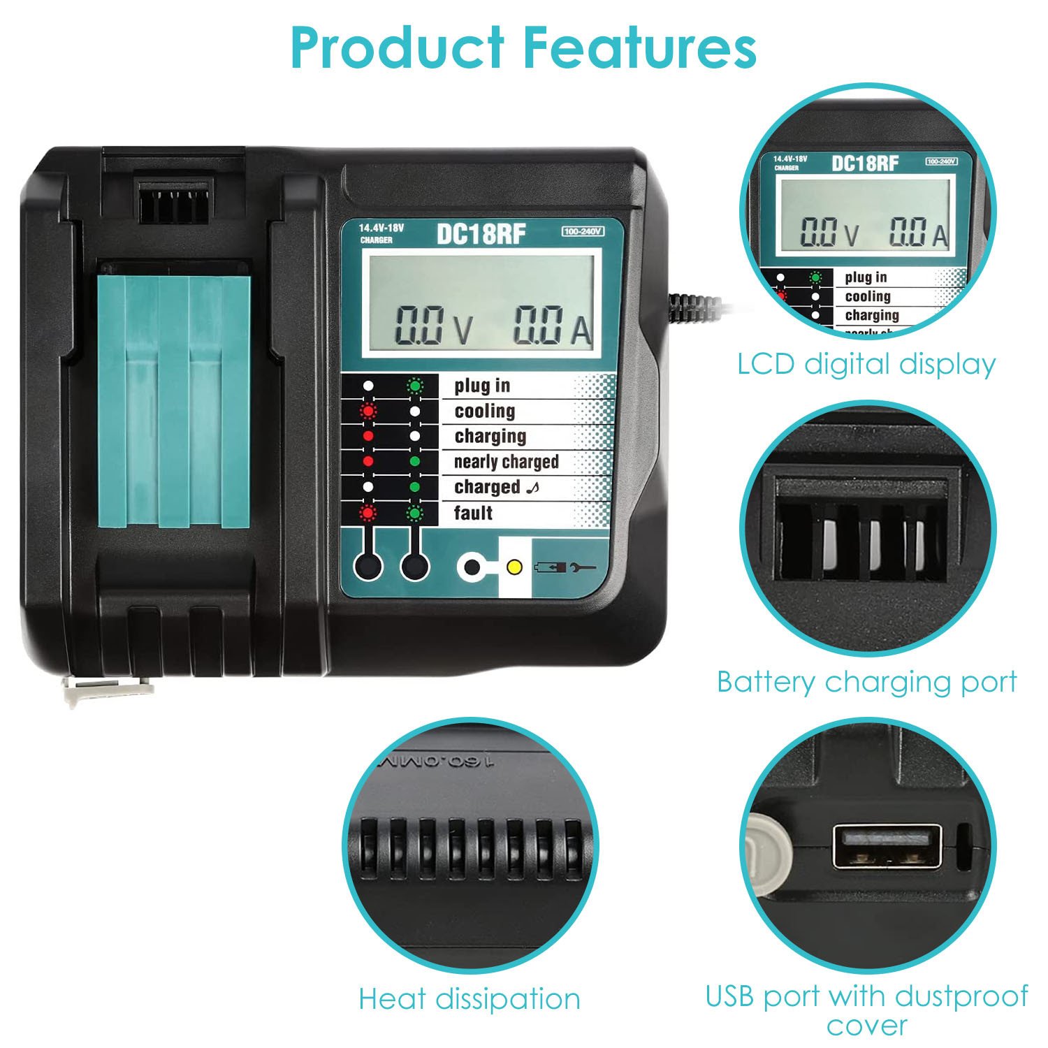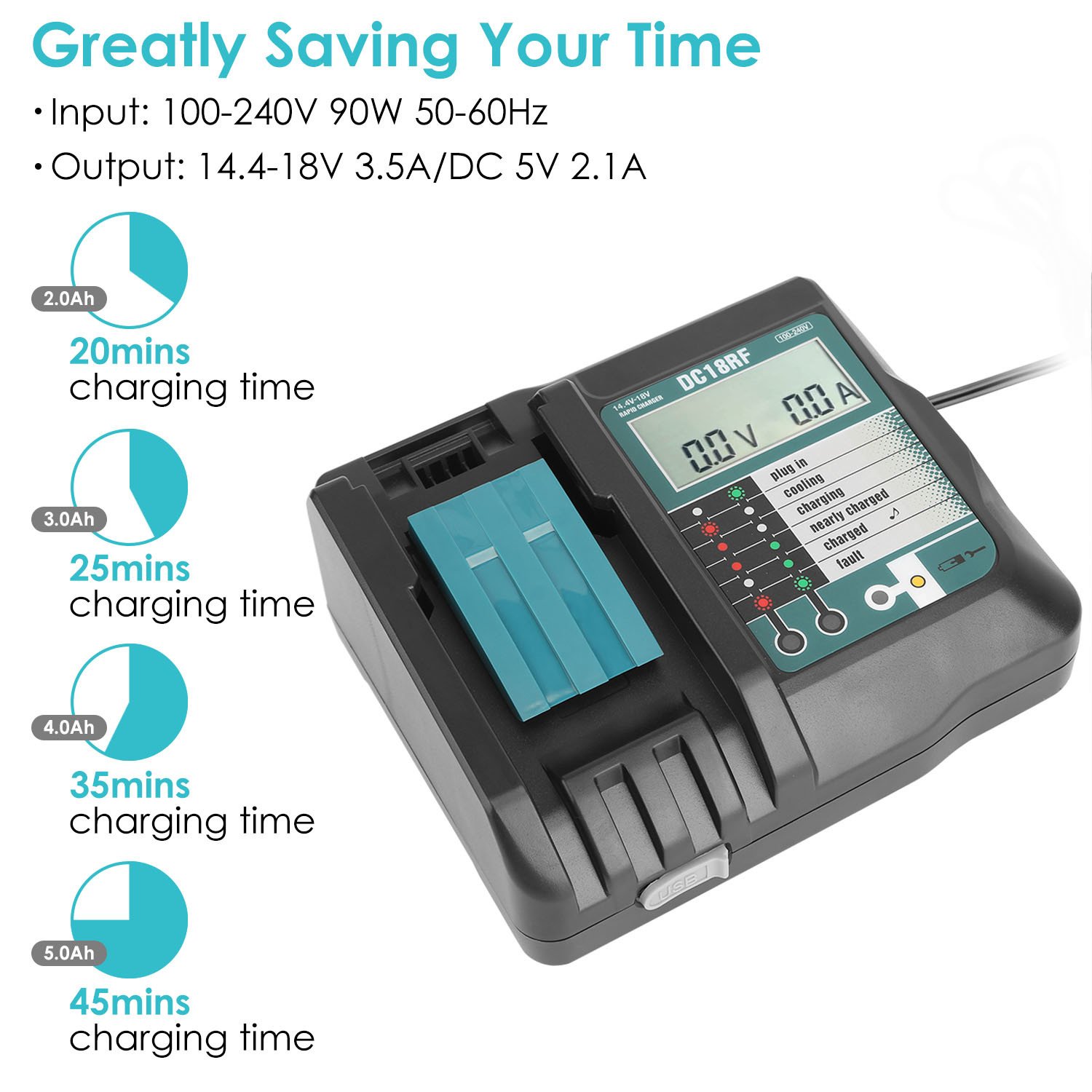 Home > Rapid Charger Replacement Fit for Makita 14.4-18V Battery BL1860 BL1830 BL1850 with LCD Display USB Port